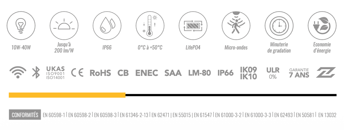 Conception rabattable, capteur micro-ondes intégré et minuterie de gradation. Version standard et premium en option pour répondre pleinement à vos besoins et réduire les coûts.